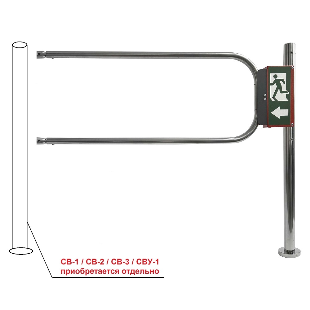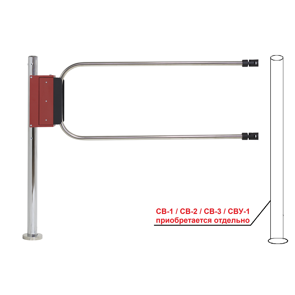 - стойки СВА-3 оснащенной механизмом блокировки с электромагнитным замком (возможность экстренной разблокировки). Может использоваться для дальнейшего формирования ограждения в трех направлениях (аналог CВ-3);