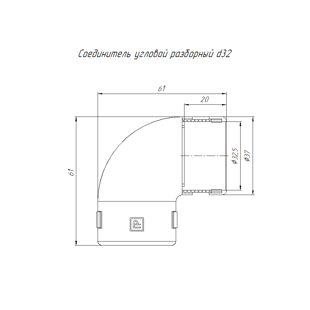 Соединитель угловой разборный д.32 мм PR.07532 (10 шт)