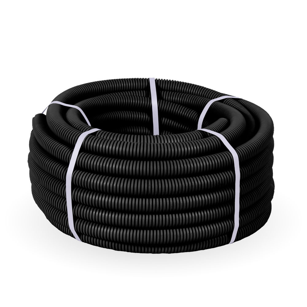 Диаметр – 16 мм. Цвет - черный. Материал – полиэтилен низкого давления (ПНД). Легкие гибкие гофрированные трубы имеют широкий диапазон температур монтажа и эксплуатации: - от -40 °С до +90 °С. Длина - 100 метров.