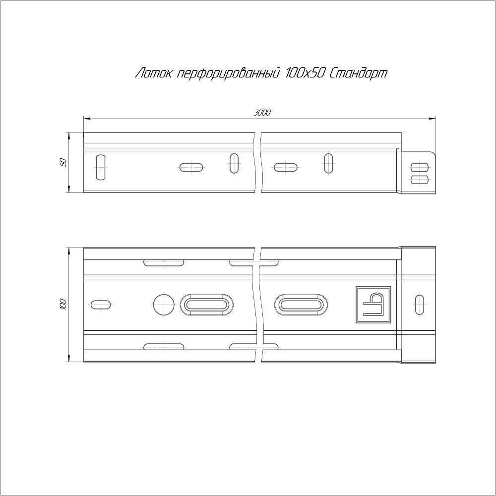 Лоток перфорированный Стандарт 100х50х3000 (0,7 мм) PR16.0002 от интернет-магазина "Точка Безопасности" это: