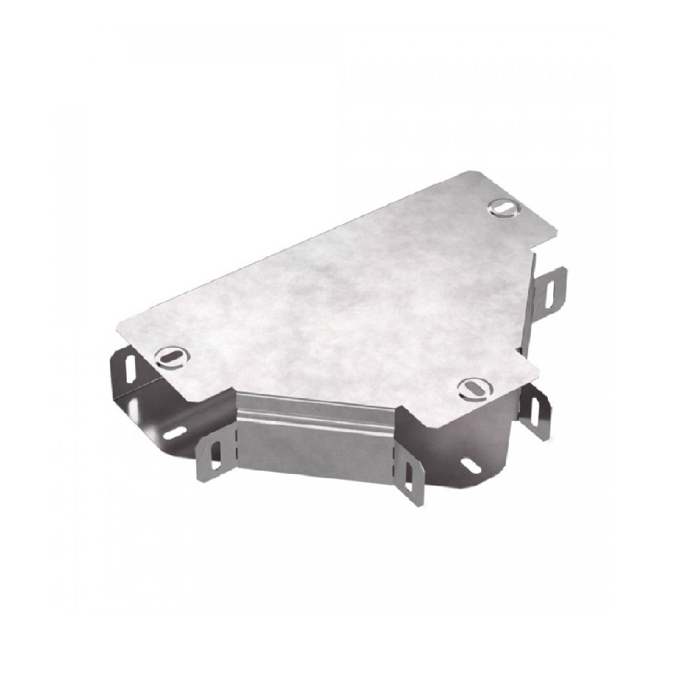 Аксессуары изготовленные из стали с защитным покрытием по методу Сендзимира это изделия, на которых защитное цинковое покрытие было нанесено на листовую сталь перед изготовлением. Толщина защитного покрытия варьируется от 10 до 22мкм. Климатическое исполнение изделий УХЛ2, что предусматривают эксплуатацию в помещении и под навесом, при температуре эксплуатации от -80 до +150°С. Т-образный ответвитель предназначен для разветвления кабельных трасс в горизонтальном направлении, для перфорированных и глухих лотков. В комплект входит крышка