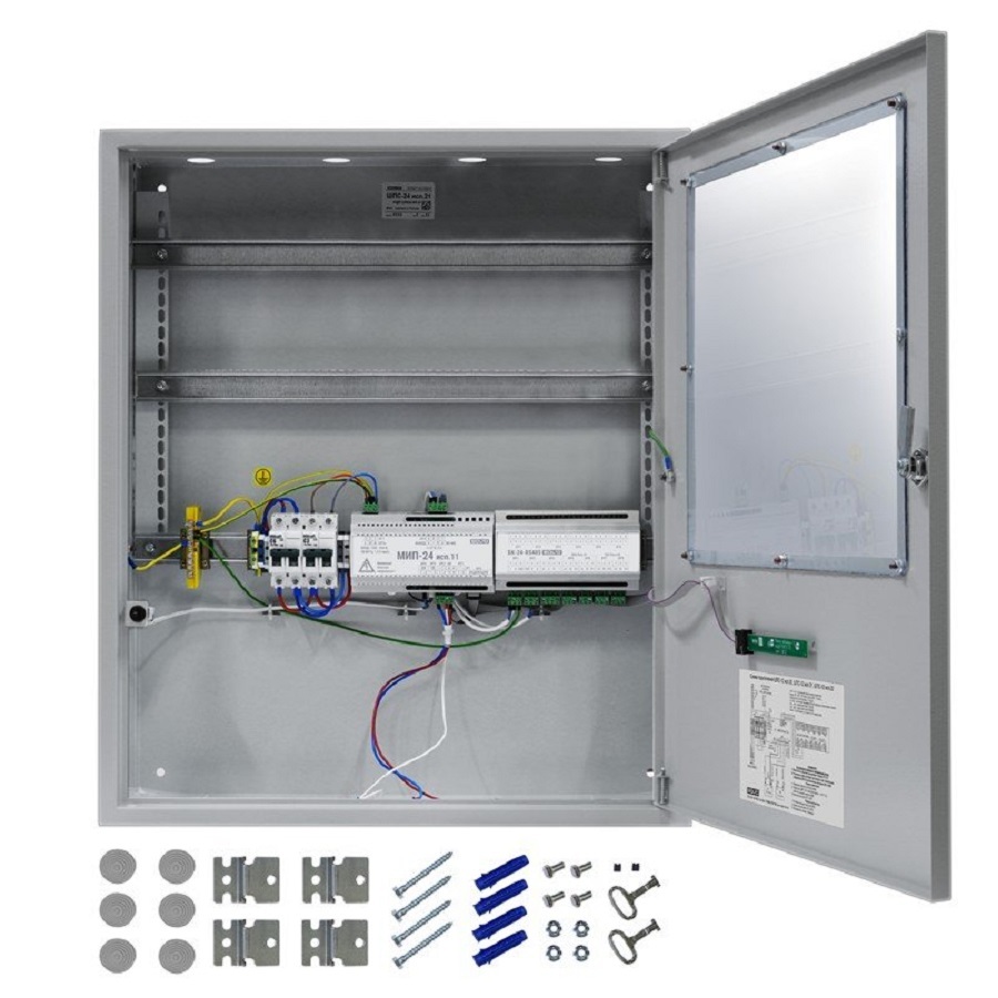 - Модуль источника питания МИП-12 исп.11 (номинальное напряжение 12 В, ток до 5 А) с резервированным питанием от двух аккумуляторных батарей 26 А*ч или 40 А*ч