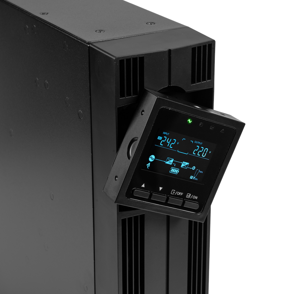 Онлайн источник бесперебойного питания SKAT-UPS 2000-RACK-ON P3 двойного преобразования, полной мощностью 2000 ВА / 2000 Вт. Встроенное зарядное устройство на 6 А позволяет подключить внешний массив аккумуляторов для создания длительного запаса времени автономной работы. Выходной коэффициент мощности 1,0 позволяет подключить больше современного оборудования с активным типом потребляемой мощности. Универсальный форм-фактор Rack/Tower подразумевает напольное размещение или установку в 19 стойку (высота 2U). Широкий набор коммуникационных разъемов дает возможность расширенного мониторинга и управления: USB-порт, COM-порт, слот для установки SNMP-карт, EPO.