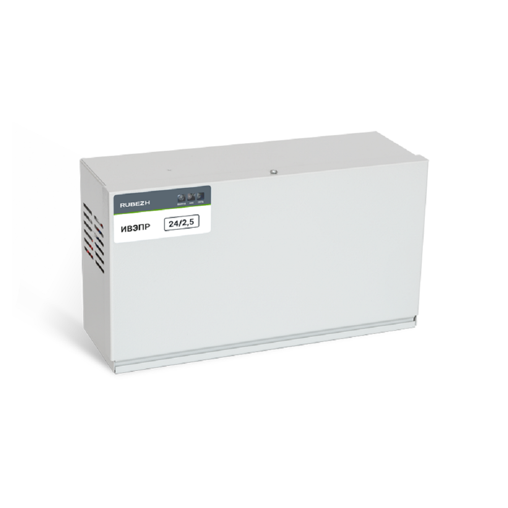 ИВЭПР 24/2,5 2x12 БР Источник питания номинальным постоянным напряжением 24 В и выходным током до 2,5 А. Предназначен для стабильного бесперебойного электропитания систем охранной и пожарной сигнализации, пожаротушения, дымоудаления и оповещения.