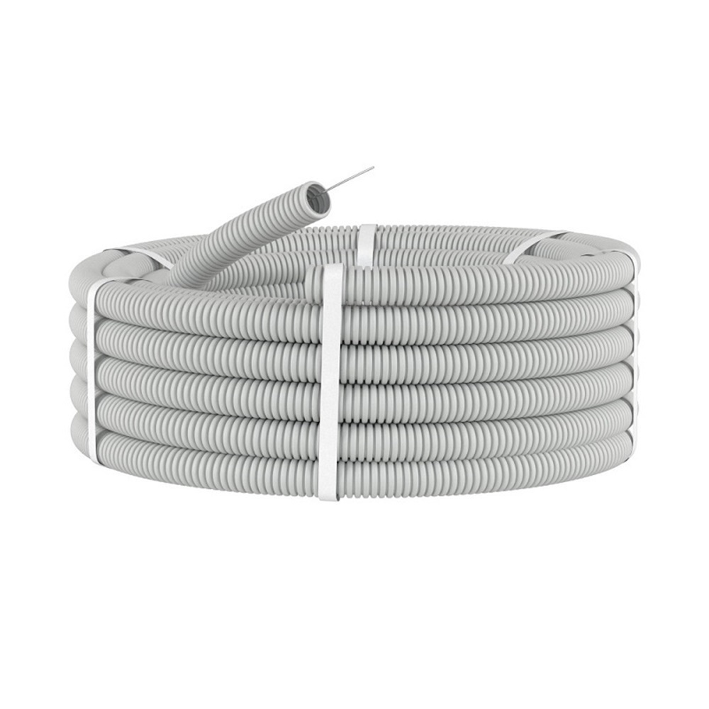 Гибкая гофрированная труба из ПВХ надежно защищает кабель от механических воздействий. Используется для прокладки электрического, компьютерного телефонного кабелей. Труба этого типа прокладывается в стенных штробах, в пустотах фальш-потолков и фальш-стен, в стяжке полов или под фальш-полами. Проволочная протяжка облегчает прокладку кабеля в трубе.