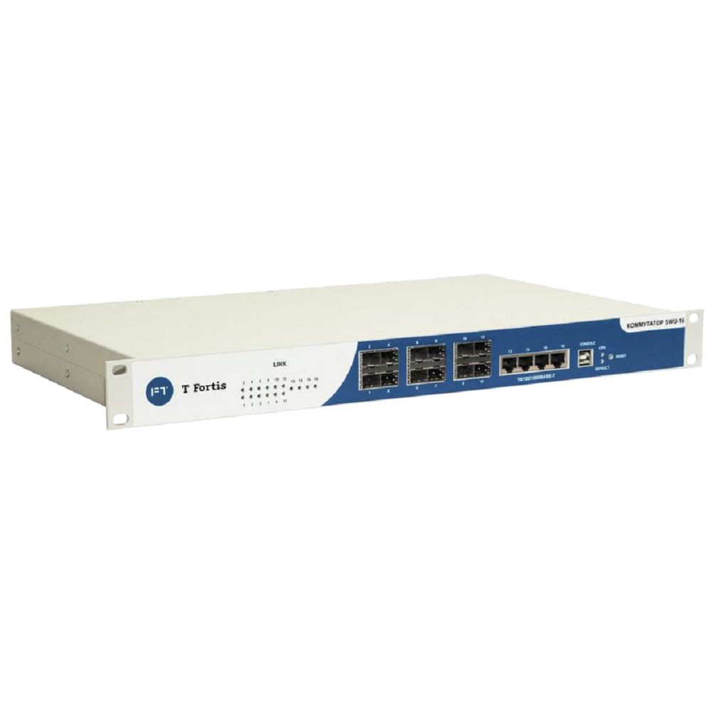 Коммутатор TFortis SWU-16T предназначен для подключения уличных коммутаторов TFortis PSW по оптике. Устройство имеет 12 портов 1000Base-X (SFP) и 4 порта 10/100/1000Base-T (RJ-45). К оптическим портам подключаются уличные коммутаторы по топологиям <<звезда>>, <<линия>> и <<кольцо>>. К "медным" портам можно подключить NVRы, АРМы, видеосерверы и другие сетевые устройства. В соответствии с требованиями к функциональным свойствам технических средств обеспечения транспортной безопасности коммутатор SWU-16T имеет дополнительный вход питания 48 В постоянного тока. Корпус устройства 19" 1U.