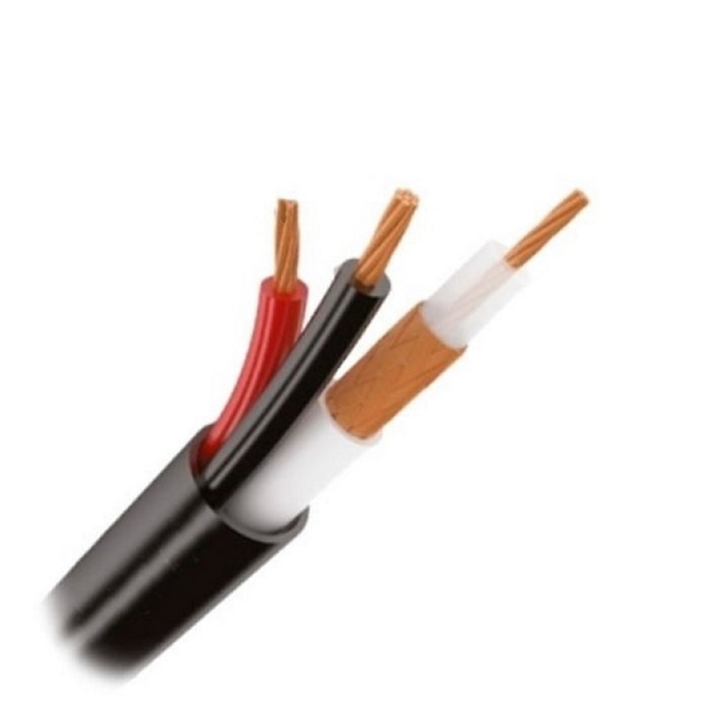 КВК-П 2*0,75 M Коаксиальный кабель (центр многожильная медь, экран многожильный омедненный) +2 жилы питания сечением 0,75кв.мм (многожильные омедненные), общая оболочка из черного ПВХ пластиката (для внешней установки).