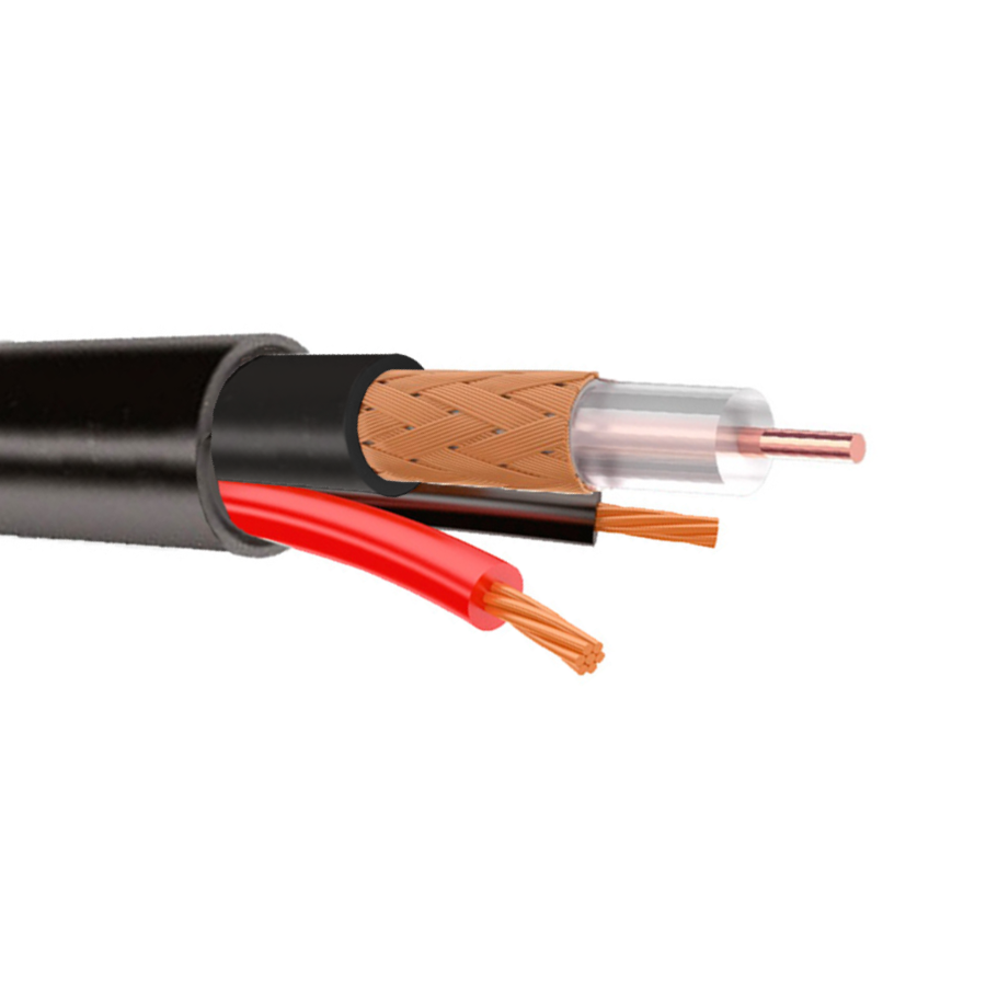 Кабель комбинированный КВК, внешний, предназначен для передачи видеосигнала с одновременным подключением питания. Применяется для построения систем видеонаблюдения. Конструкция кабеля состоит из коаксиального радиочастотного кабеля с волновым сопротивлением 75 Ом в комбинации с двумя проводами питания диаметром 0,5мм объединённых под одной оболочкой.