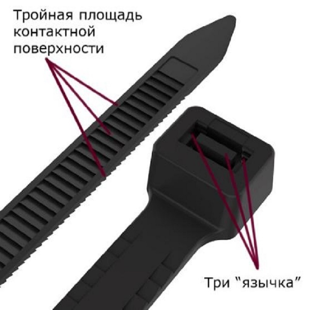 Хомут "Тройной замок" 300 х 3,5 мм черный (100 шт) от интернет-магазина "Точка Безопасности" это: