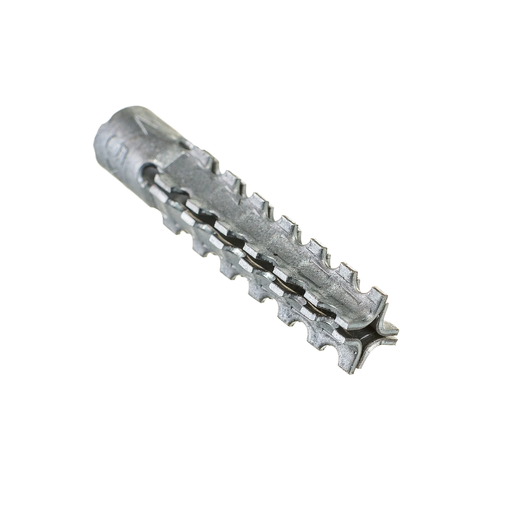 Дюбель для пенобетона металлический предназначен для работ в газо-, пенобетоне. Металлический дюбель для газо(пено)бетона состоит из нераспорной цилиндрической шейки и четырех распорных сегментов с зубцами.