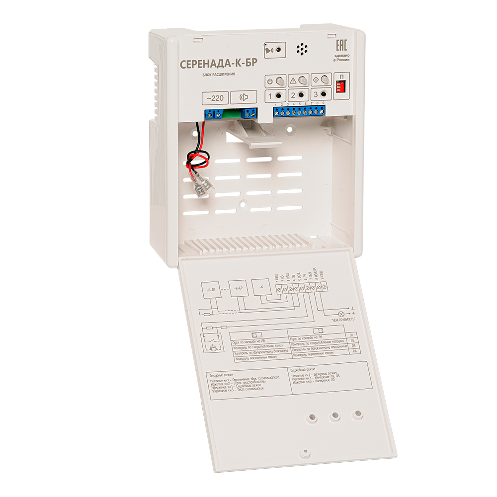 Серенада-К-БР, Блок расширения предназначен для расширения зоны оповещения в системах пожарной сигнализации. Используется в качестве усилителя мощности аудио сигнала, получаемого от блока речевого оповещения Серенада-К.