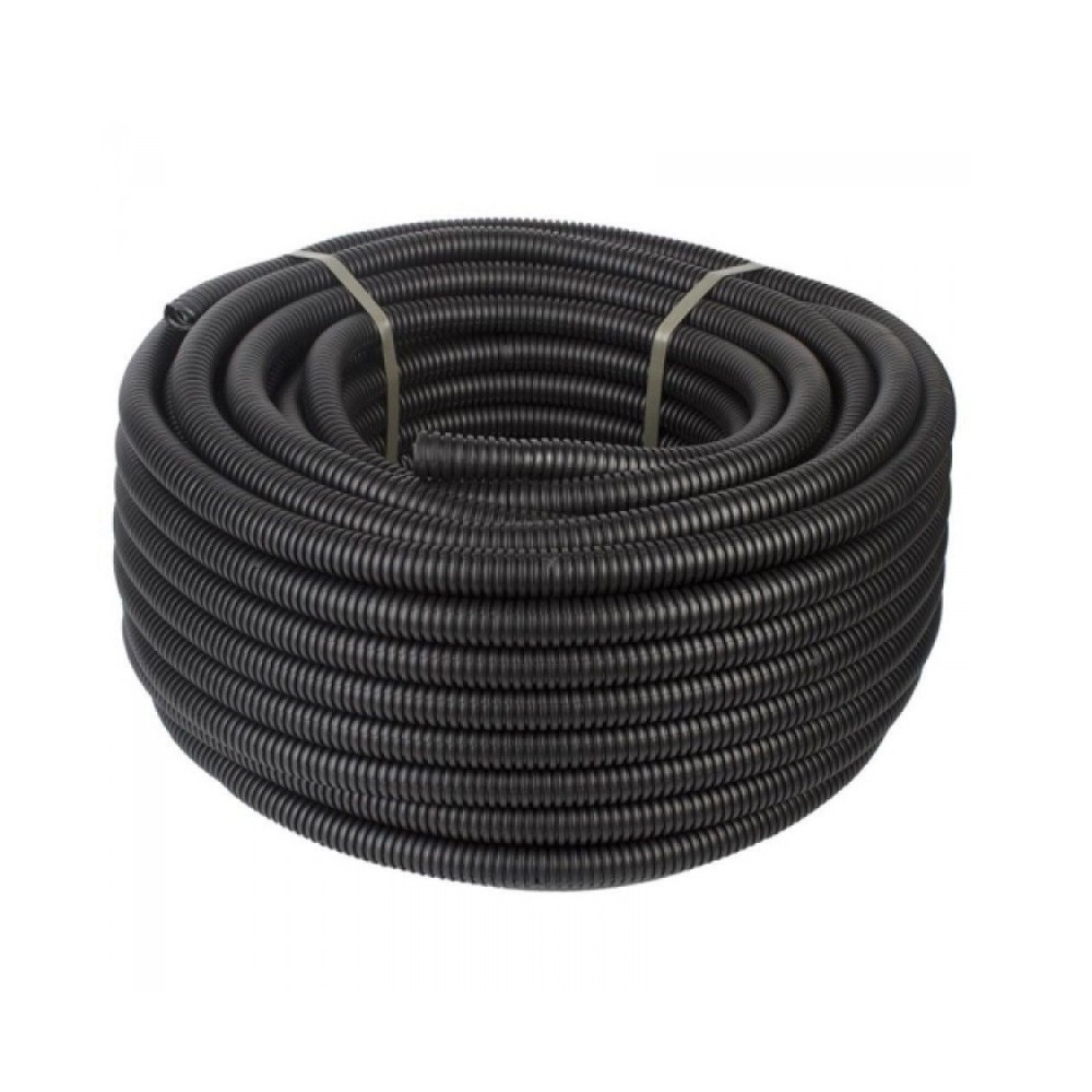 Труба гофрированная из ПНД с зондом, черная Ø 16 мм (бухта 100 м/уп.) REXANT из полиэтилена низкого давления отлично подходит для защиты изолированных проводов и кабелей от механических повреждений и агрессивного воздействия окружающей среды при прокладке сложных систем и трасс. Применяется для скрытой и открытой прокладки в несущих и ограждающих конструкциях из несгораемых материалов жилых, административных и производственных зданий и сооружений.