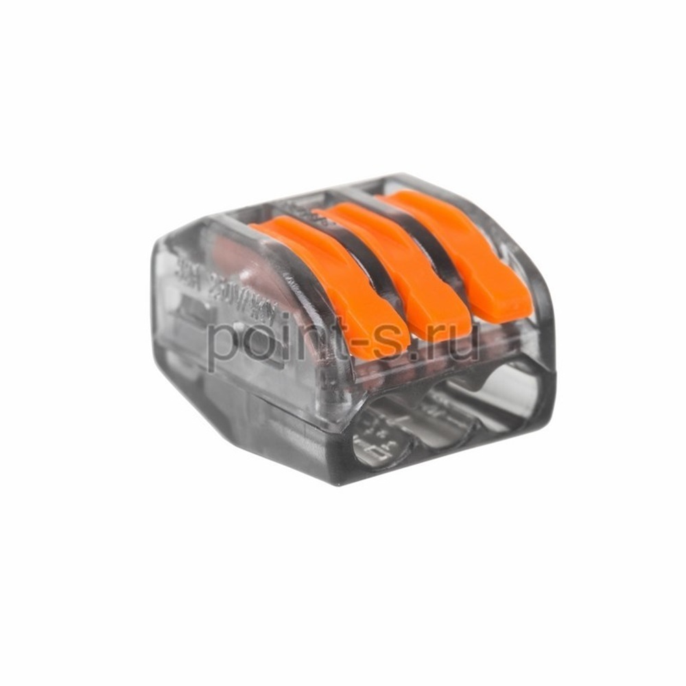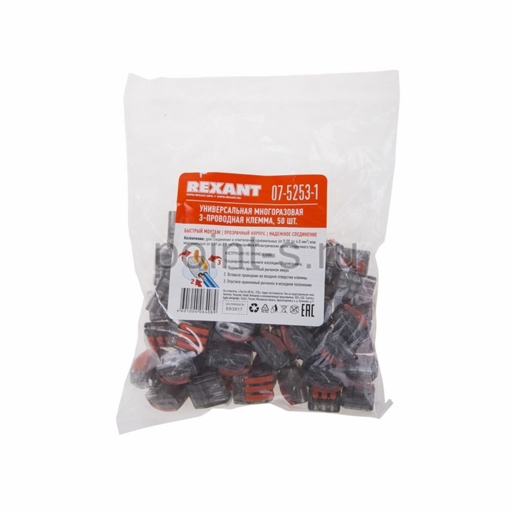Универсальная клемма 3-проводная Rexant (0,08-2,5/4 мм²) от интернет-магазина "Точка Безопасности" это: