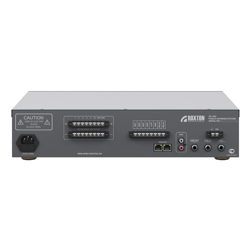 Комбинированная система оповещения ROXTON SX-480 представляет собой цифро-аналоговый моноблок для построения полнофункциональных систем оповещения и управления эвакуацией (СОУЭ) 3-го типа, объектовых (ОСО) и локальных (ЛСО) систем оповещения. Система включает в себя блок автоматического контроля до 5-ти линий громкоговорителей, трансляционный усилитель мощностью 480 Вт с 2-мя линейными и 1-м микрофонным аудиовходами, темброблоком, поканальными регуляторами громкости регуляторами и селектором зон. Помимо этого, в систему встроен аудио проигрыватель с поддержкой внешних USB/SD накопителей, Bluetooth и FM тюнера, которые расширяют мультимедийные возможности системы.