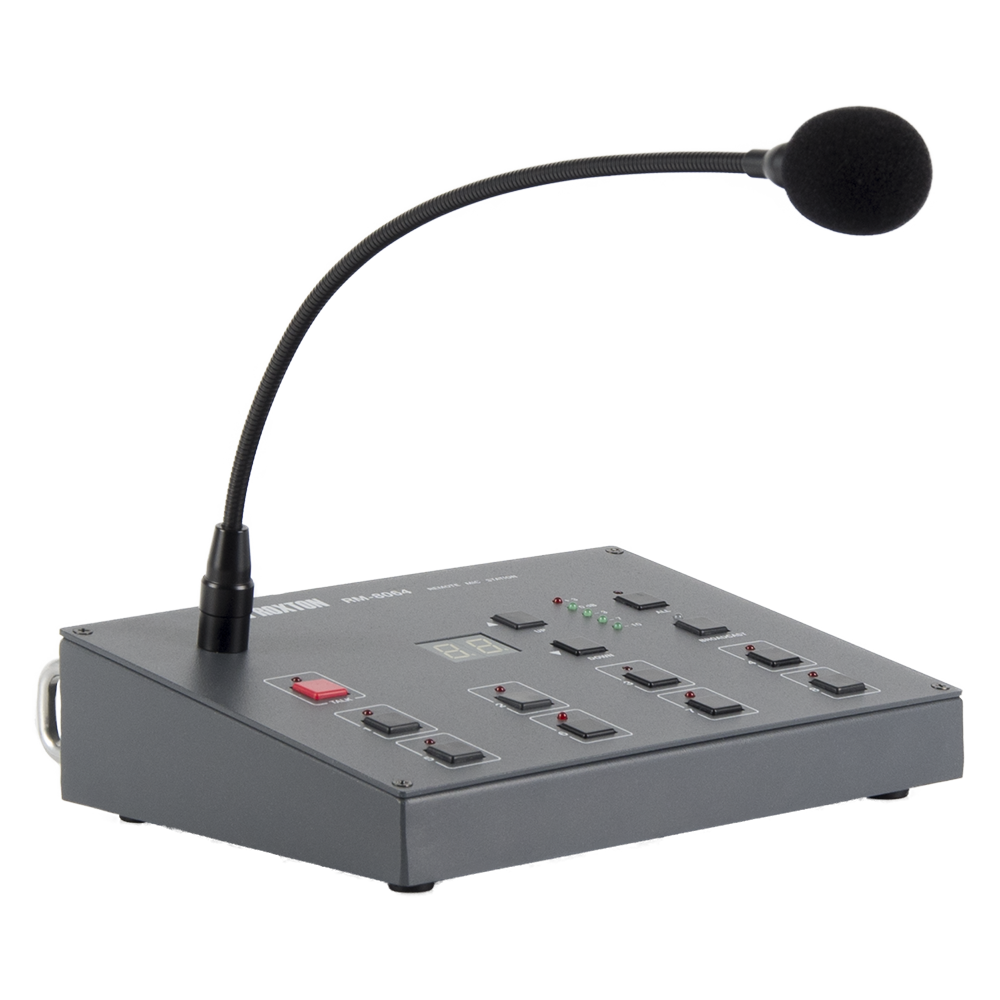 Микрофонная консоль ROXTON RM-8064 совмещает в себе функции селектора зон и микрофона. Предназначена для дистанционного управления 64-мя комбинированными системами ROXTON RA-8236. Благодаря встроенному в консоль селектору зон возможно выборочно передавать речевые сообщения с микрофона в одну или несколько зон оповещения. Помимо этого консоль оборудована линейным входом для подключения внешних источников аудиосигнала.