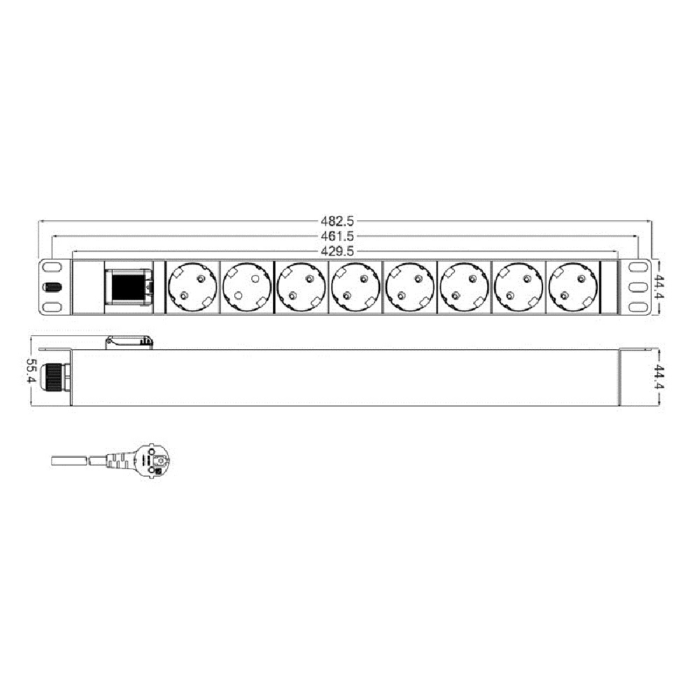 Блок розеток для 19" шкафов Hyperline SHT19-8SH-S-2.5EU от интернет-магазина "Точка Безопасности" это: