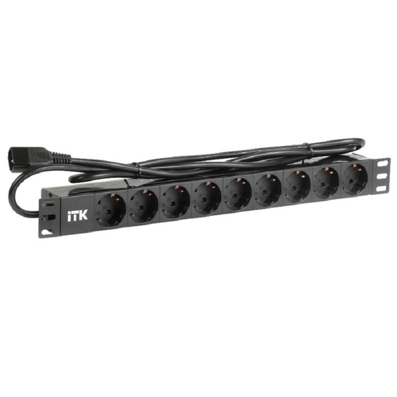 ITK PDU 9 розеток немецкий стандарт, 1U, шнур 2м, вилка С14, алюминиевый профиль.