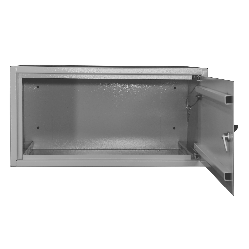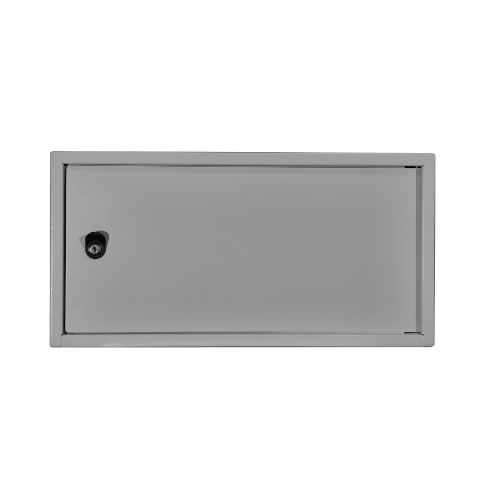 Шкаф имеет цельносварную конструкцию. Крепление к стене анкерными болтами через сквозные отверстия в задней стенке шкафа. Дверь шкафа имеет рамную конструкцию и утоплена на 10мм, фиксируется врезным ригельным замком, стойким к подбору ключей и механическим повреждениям. Специально разработанные внутренние шарниры препятствуют вскрытию шкафа путем срезания петель. Внутри установлен болт заземления. Порошковополимерная окраска RAL7035 или RAL9034 по предварительному заказу.