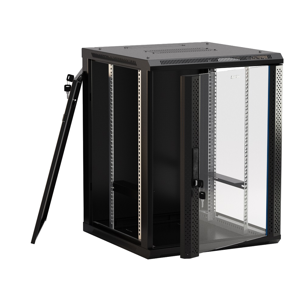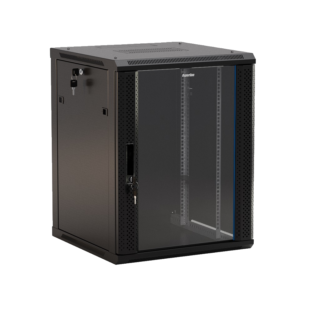 Шкаф настенный 12U Hyperline TWB-1245-GP-RAL9004 от интернет-магазина "Точка Безопасности" это: