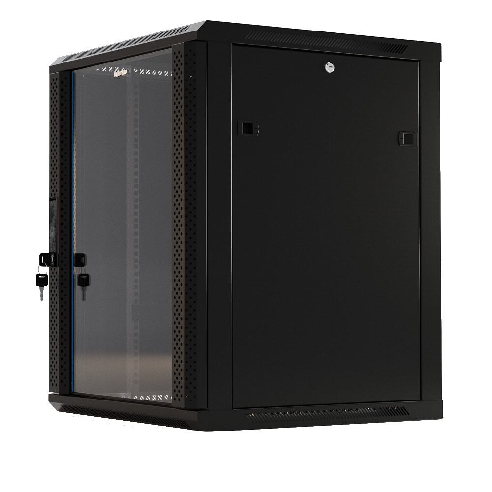 Hyperline TWB-1245-GP-RAL9004 Шкаф настенный 19-дюймовый (19"), 12U, 650x600х450мм, стеклянная дверь с перфорацией по бокам, ручка с замком, цвет черный (RAL 9004) (разобранный)
