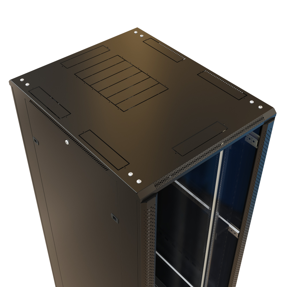 4. Предперфорация в крыше и дне шкафа. Обеспечивает возможность дооснащения шкафа кабельными щеточными вводами и вентиляторными панелями, без использования специального инструмента для прорезания отверстий в металле.