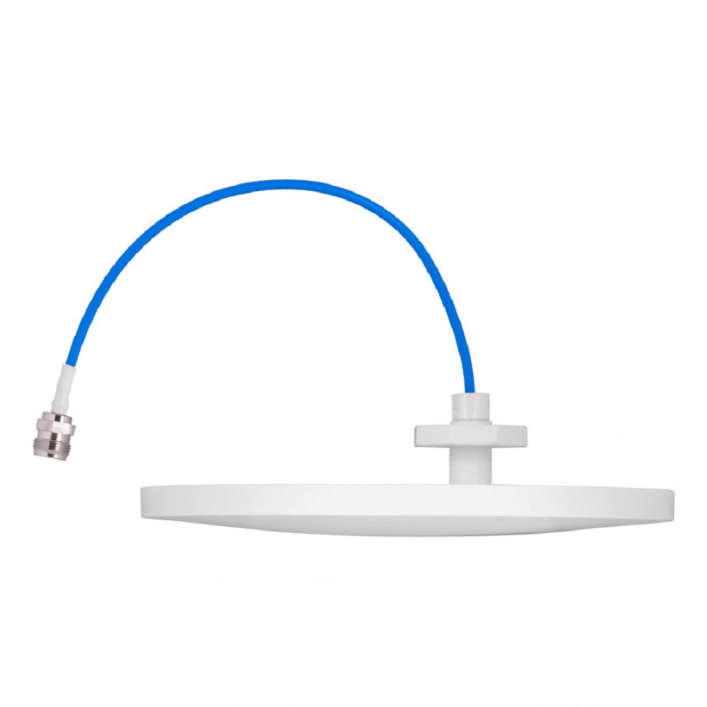 Отличительной особенностью данной антенны является утонченный корпус и современный дизайн, что позволяет антенне вписаться в интерьер самого высокого класса. Конструкция антенны позволяет монтировать ее на потолок Армстронг или любой другой потолок подвесного типа. Монтажные отверстия в корпусе антенны упрощают ее установку с помощью саморезов. Антенна обладает круговой диаграммой направленности, что позволяет равномерно передавать сигнал по всем направлениям. Наиболее предпочтительно использование антенны в загородных домах/апартаментах премиум уровня и офисных помещениях. Высокочастотный разъем антенны N-типа (розетка) имеет стандартизированное для систем усиления мобильной связи волновое сопротивление 50 Ом, обеспечивающее согласование со всей системой усиления