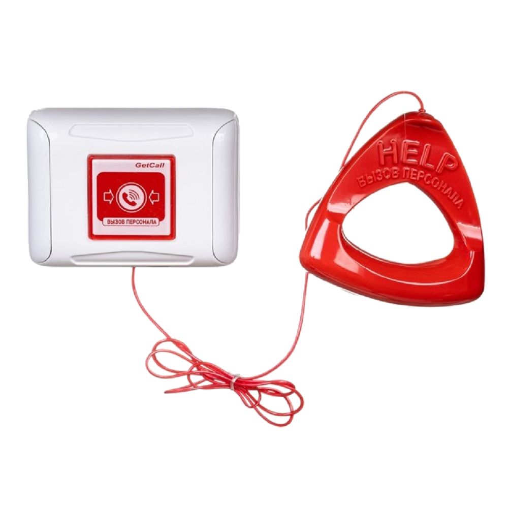 - Кнопка вызова GC-0423W2 имеет ручку-отвес, что позволяет использовать ее возле душевых кабин, в ванных комнатах, а также для обеспечения вызова при нахождении вызывающего на полу помещения.