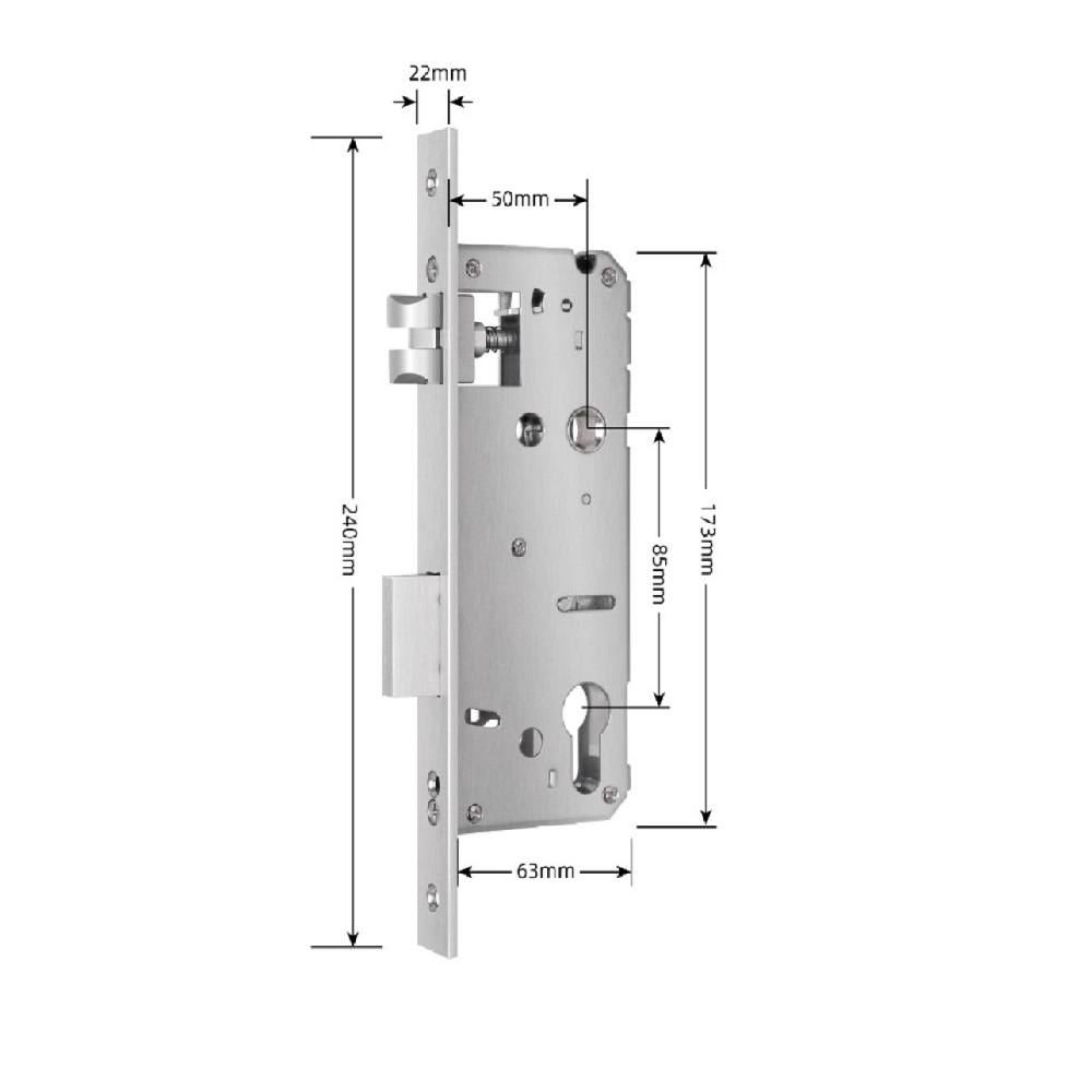 Врезной замок 5085 производства компании Novilock обеспечивает удобство монтажа и соответствует всем требованиям безопасности. Механизм изготовлен из высокотехнологичной нержавеющей стали стандарта ss304 и совместим с большинством замков универсального типа.